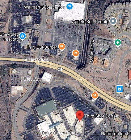 We'll depart between 7:45 and 8:00am, drive towards Prescott on the 89a and then head south on the 89 into Prescott, cutting across Prescott Lakes Parkway and popping out just down the street from the mall.
